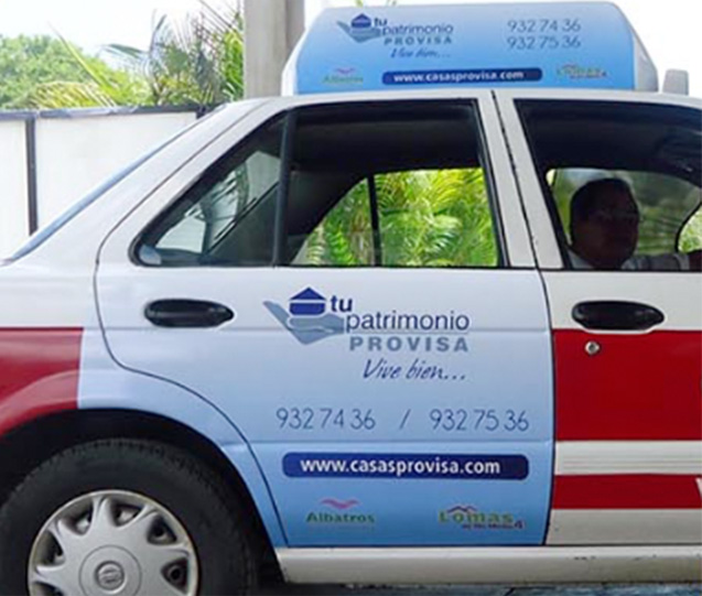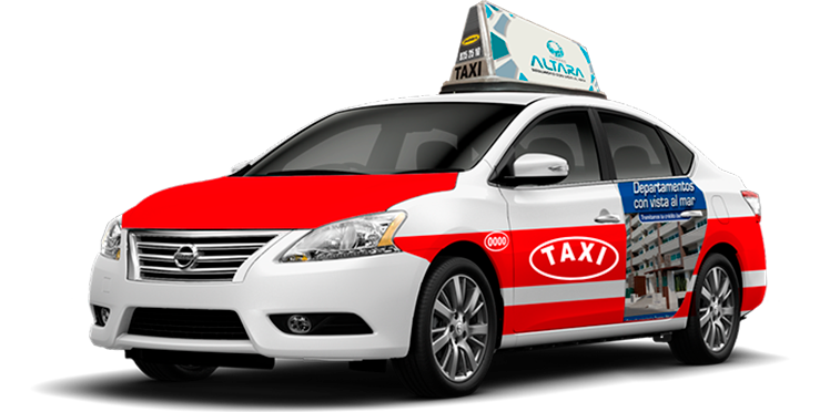 ¿Qué otro medio de publicidad viaja derecho a la puerta principal de tus consumidores estén donde estén? Con nuestros taxis publicitarios, tu mensaje llegará al público de día y de noche, las 24 horas, incluso en sitios donde no existe existen otros medios publicitarios en exterior.